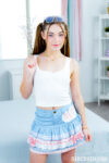 by Passion HDJuniper Ren, pigtailed brunette coed with small natural tits, teases in pink crop top and denim skirt before making out with older bald man …